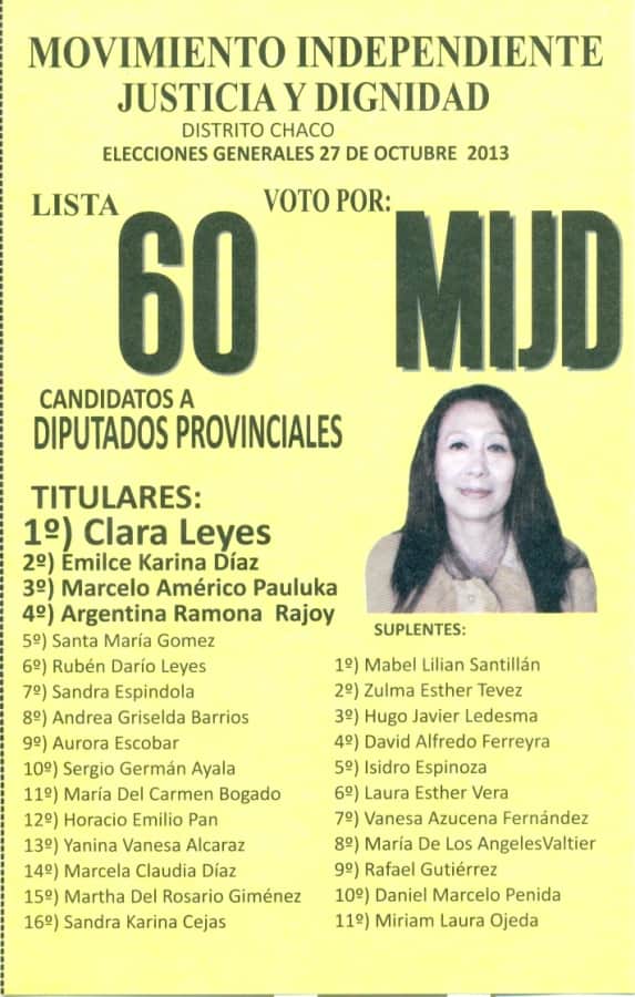 | 60 | 60 | Movimiento Independiente Justicia y Dignidad |